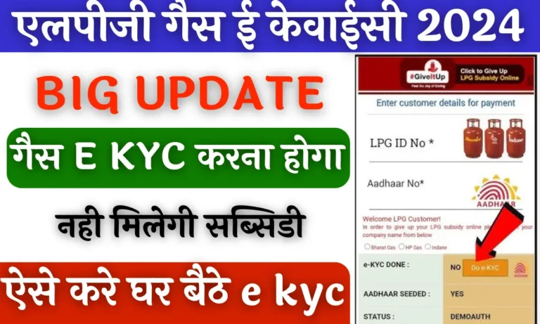 Lpg gas e-kyc 2024: भारत की सरकार जनता के हर जरूरत का सामान सस्ते दामो पर उपलब्ध करती है वैसे …